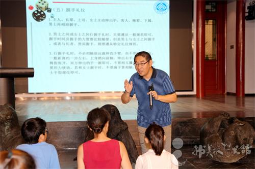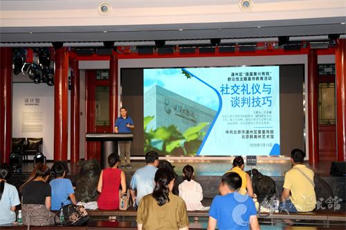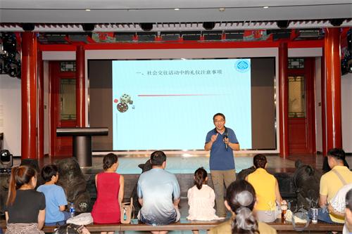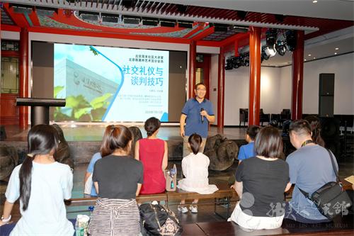 为满足市民多元学习需求、丰富精神文化生活,北京韩美林艺术馆于 2025 年 7月13日 14:00,在南展区成功举办 “北京周末社区大讲堂” 活动。本次活动特邀北京工商大学商学院副教授、MTA 教育中心主任公克迪老师,带来《社交礼仪与谈判技巧》主题讲座,50 位全年龄段市民参与其中。