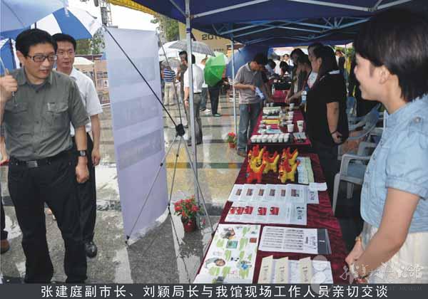 杭州副市长张建庭、园文局局长刘颖与我馆现场工作人员亲切交谈