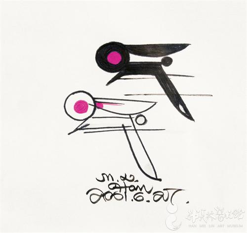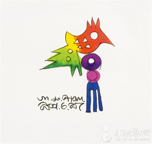一次,作为全国政协常委的美林到香山饭店委员驻地报到开会。工作人员看了他手中的通知书,愣是不信他就是鼎鼎大名的韩美林,问:“你是韩美林的秘书?”他摇头。工作人员于是肯定道:“那你就是韩美林的儿子。”谁叫他抬脚就按着自己的性子迈步,风风火火、蹦蹦跳跳呢!