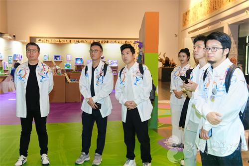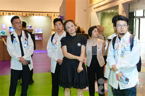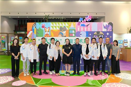 ▲韩美林艺术基金会理事长周建萍、韩美林艺术基金会执行秘书长陈丽华与韩美林的学生们参观北京韩美林艺术馆“与美童行”儿童艺术展
