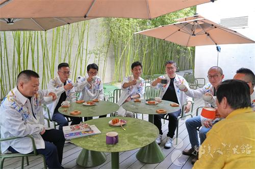 北京韩美林艺术馆熊猫咖啡厅,竹影婆娑,凉风阵阵。韩美林为学生们分发了月饼,提前共庆中秋佳节。