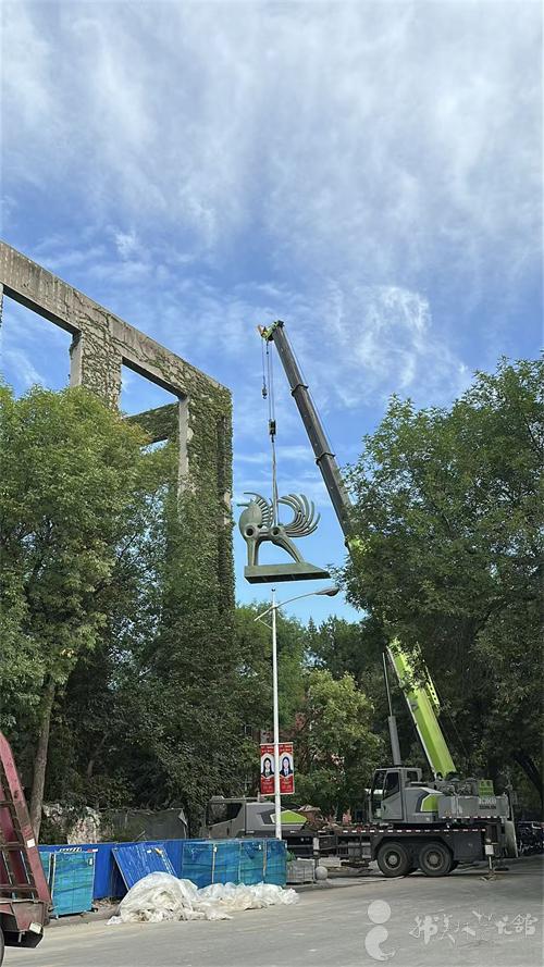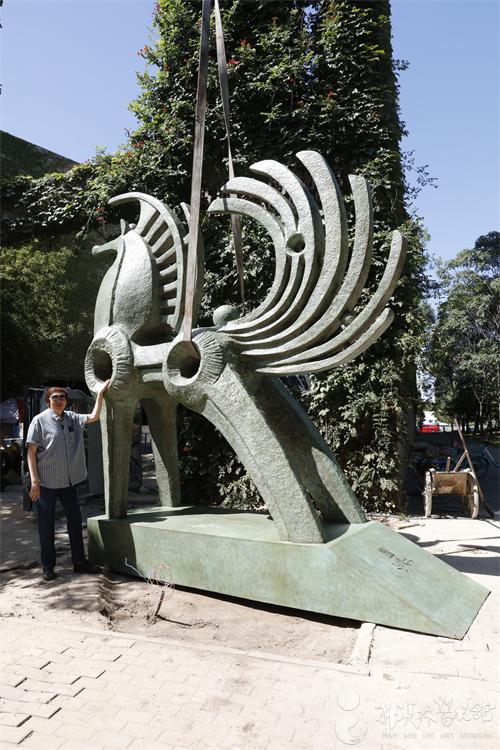 《天马》雕塑高4.5米、长4.37米,重约3吨,在“山西宇达”铸造之后,经过一天一夜运抵天津大学。在雕塑安装现场,冯骥才先生亲自指挥吊车,为《天马》调整角度。待雕塑落稳,他招呼全院所有师生在《天马》前合影,“来,大家一起挥手,感谢韩老师!”